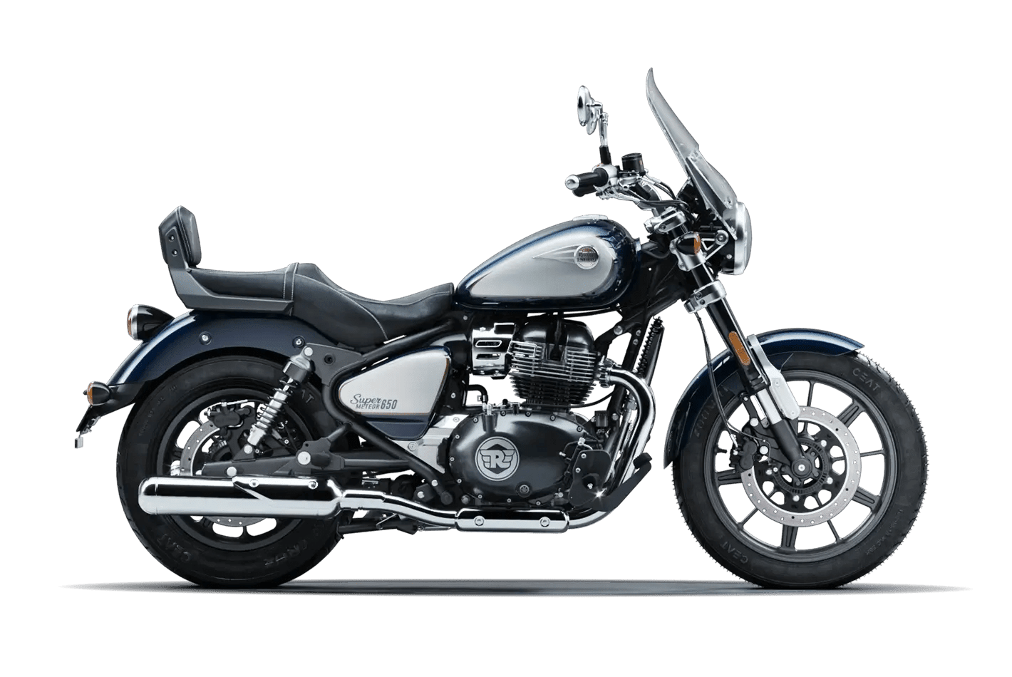 • Sculpted Fuel Tank: The spacious, teardrop tank on the Super Meteor 650 can carry up to 4.15 gallons of fuel, ensuring that even the longest of rides continues uninterrupted.