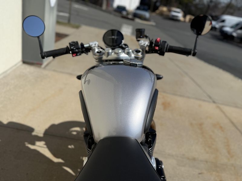 • HIGH-SPECIFICATION CHASSIS: Lightweight and strong, the tubular steel cradle frame blends classic style with contemporary capability. Razor-sharp handling is delivered by fully adjustable 43mm (1.69in) upside-down Marzocchi forks and twin ร–hlins RSUs with external reservoirs. Adjustable for preload, compression, and rebound damping, and mounted to an aluminum swingarm, the suspension setup ensures exceptional compliance and precise control through every turn.